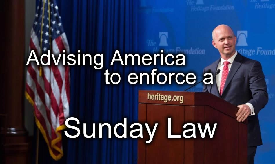 "We are seeing steps towards the final fulfillment of Bible prophecy. Take a look at what the Heritage Foundation, a "Christian" institution which advises the American government on policies, said in a document it published recently: Support for a Uniform Day of Rest. As zoning laws allow a community to determine where one can operate certain businesses, 'blue laws' reflect the local judgments as to when one can operate certain businesses. In the case of McGowan v. Maryland (1961), the Supreme Court held by an eight to-one vote that Sunday-closings laws that include the purpose of providing a uniform day of rest are constitutional and can accommodate the fact that the majority of people who take a day of rest for religious reasons do so on Sundays ... A uniform day of rest that limits commercial activity can provide tem poral boundaries that help communities to set aside time for religious observance, family gatherings, outdoor activities, and rest. A stable base of research shows that these practices correlate with better mental health, stronger social bonds, and more stable family structures ... By restoring a common rhythm of rest and reflection, community rest laws could help to reverse the trend toward 'spiritual homelessness' and foster the social habits necessary for communities to cohere and flourish." FULL REPORT .
