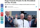 "Pope Francis demanded Monday that world governments collectively commit to end rising world hunger by resolving the conflicts and climate change-related disasters that force people to leave their homes ... Francis drew a standing ovation Monday at the U.N. Food and Agriculture Organization, where he marked the U.N.'s World Food Day by calling for governments to work together to tackle the interconnected problems of hunger, global warming and migration." How is it that the pope can 'demand' world governments to do certain things? How is it that world leaders gather to hear from the pope? Well, you only need to look at Bible prophecy to see that God revealed thousands of years ago in the books of Daniel and Revelation, that a religious power would arise from the old Roman Empire and control the nations. Revelation 17 confirms that in the end times, this 'MOTHER of Harlots', the Roman Catholic Church, shown as 'riding the beast', would CONTROL the nations of the world and would 'receive power from the kings of the earth' (Rev.17:12-13). This is how the pope can 'demand' the nations to submit to his will. Yes, the Papacy lost it's power in 1798, when the French marched into Rome and deposed the pope from his throne of power. And the pope at this time, does not have the same power he used to in the middle ages. But as Revelation 13 confirms, this 'wound' inflicted upon the Papal beast will be healed and power will be restored once again by the European leaders who will give their power and authority to the Papal beast (Rev. 17:12-13). And America, the 'second beast' of Revelation 13, will be the leading nation to enforce the dictates of Papal Rome. "Oh but the Catholic Church do so much good and the pope is so humble!" ... Give power back to the Vatican, and you will then see the REAL character of the beast - Persecution to anyone who does not conform to it's dogmas! .