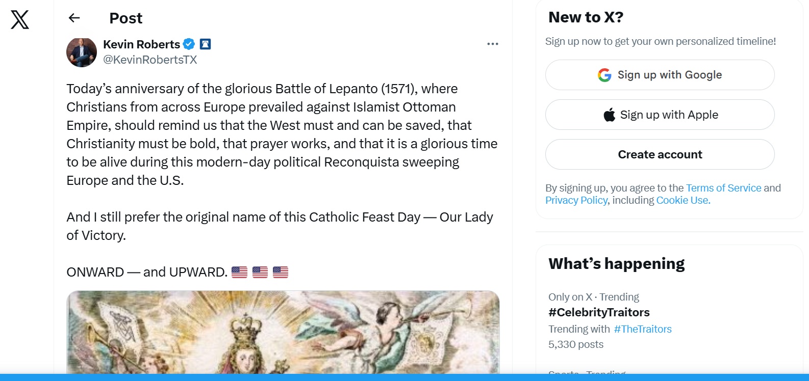 PROJECT 2025 FOUNDER CALLS FOR "CHRISTIAN" RECONQUEST OF EUROPE AND AMERICA, GIVING GLORY TO CATHOLICISM AND MARY