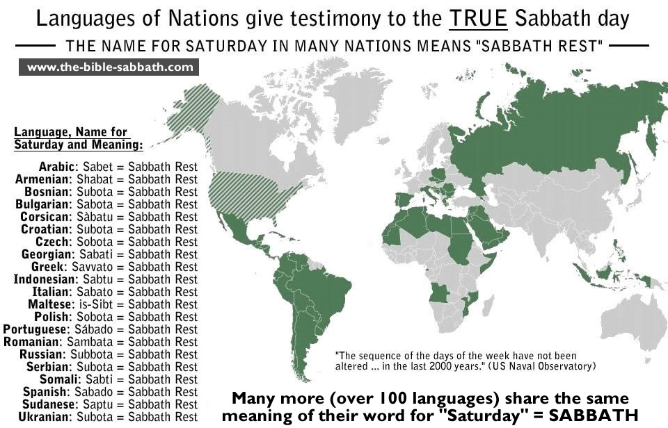 Please also see this 1886 chart - THE CHART OF THE WEEK - showing the 7th day Sabbath (our Saturday) to be the Sabbath in all ancient languages.